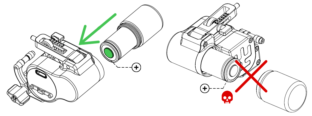 Always check the polarity when installing the battery into the machine! (see the pic.)