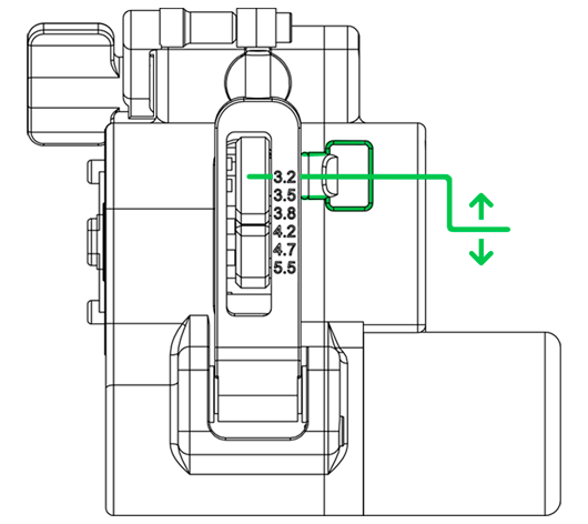 2. Move the screw so it is located opposite the number, indicating the desired needle stroke.